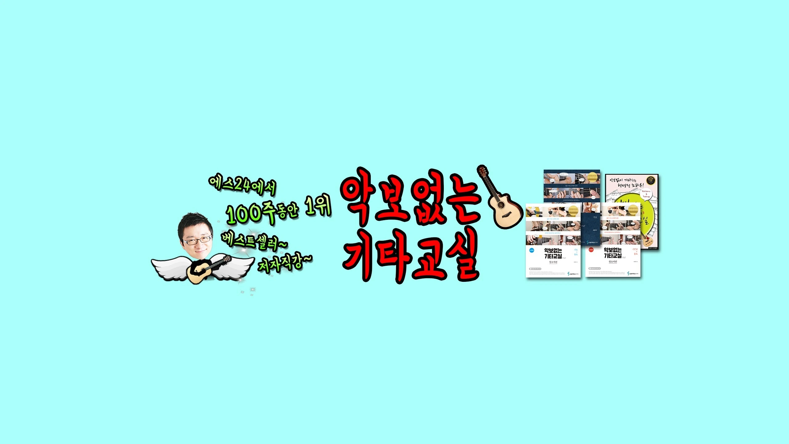 환영합니다^^ 2006년도부터 쭈욱~ 베스트&스테디셀러로 사랑 받고 있는 기타교본 "악보없는 기타교실" 동영상 강의입니다. 예스24에서 123주 동안 예술 분야 TOP 20을 기록한 교본이에요. 제 기억으론 100주 연속 1위 이구요. 초보자의 눈높이에 맞춰 천천히 친절하고 상세하게 가르쳐드립니다. 왕초짜 가요편, 왕초짜 CCM편, 패턴과 느낌편 (악보없이 기타치는 법) 그 밖의 다양한 강의를 통해 기타 실력을 업그레이드 시키세요^^ 기타 초보, 기타 레슨, 기타 강의, 통기타, 통기타 연주, 통기타 강의, 베스트셀러 저자 직강,
